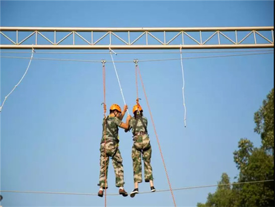 挑战高空,在所有的训练项目结束后,成员们作为一个个体,在保证安全措施的情况下,来对自我进行一个挑战,在高空中,两块断开的木板之间跳过去,既是挑战心理,也是挑战生理,在你横跳过去的那一刻,你就是完成了对自我的挑战。
